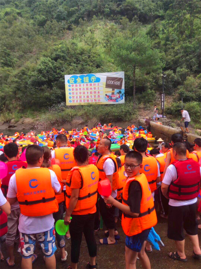 這一路上,我們歡聲笑語不斷,導(dǎo)游以幽默風(fēng)趣卻又不乏專業(yè)的風(fēng)格為大家介紹了大龍灣的特色,但非常期待的莫過于景點(diǎn) · 龍井峽激情皮筏漂流,龍井峽水流湍急,水純?nèi)澹鞫稳L(zhǎng)3公里,頭尾落差128米,俯沖水壩3—5米不等,乘伐浪漫奔放,漂流刺激驚險(xiǎn)。